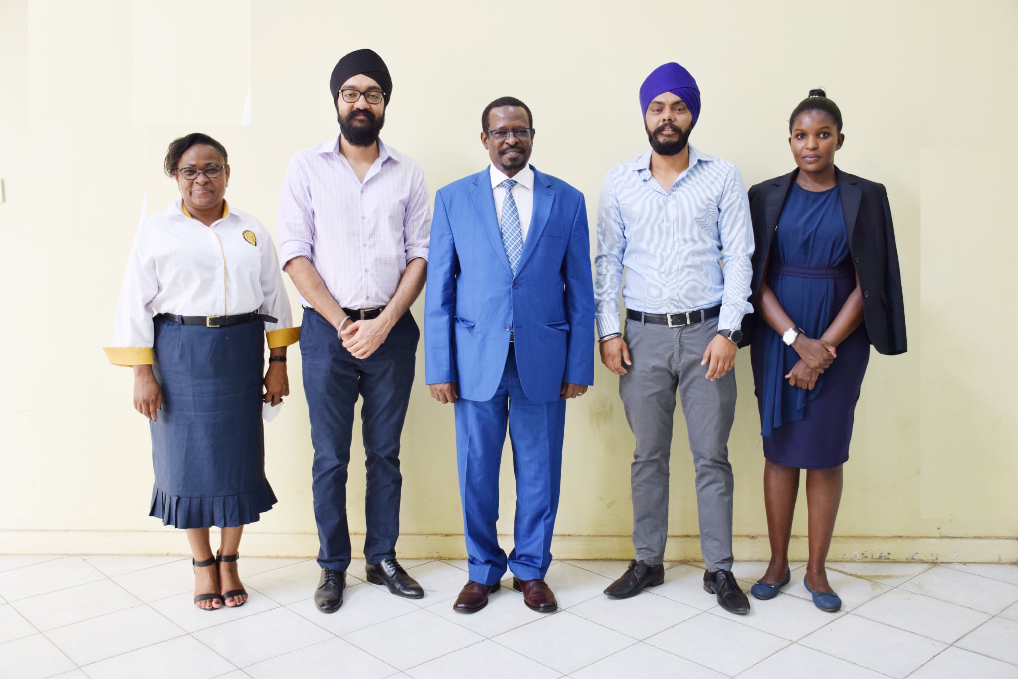 Vice Chancellor Prof. Isaiah I.C. Wakindiki meeting with Dr. Satwinder Singh Rupta, a KCA University Alumni. Dr. Satwinder is an ICT Entrepreneur and the owner of Sumo Entreprise Solutions based in Kisumu. Dr. Satwinder has also employed Daphney Achieng, a current KCA University student.